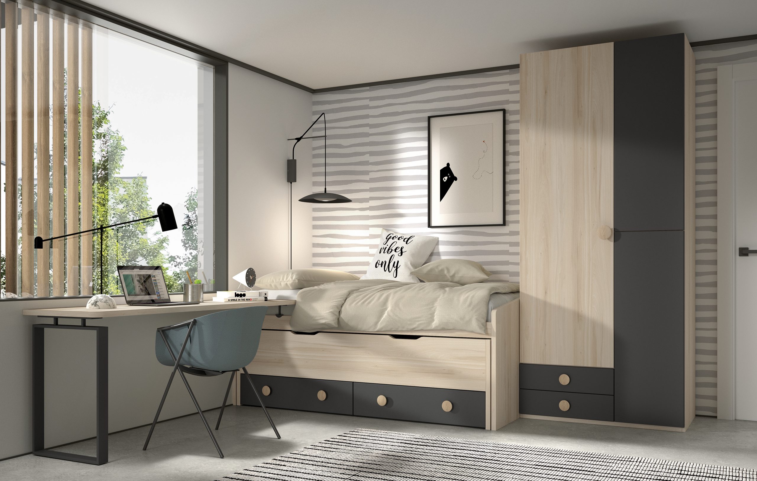 En Muebles Candela, entendemos que los dormitorios juveniles son espacios fundamentales para el crecimiento y desarrollo de los jóvenes. Por eso, ofrecemos una exclusiva colección de dormitorios juveniles en Valencia diseñados para combinar funcionalidad, estilo y comodidad, creando ambientes perfectos para estudiar, descansar y relajarse.